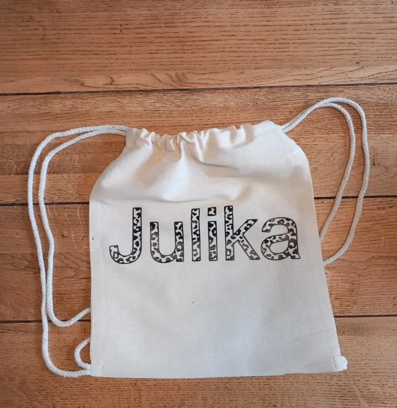 Nooit meer je gymtas kwijt! Deze gepersonaliseerde trekbandrugzak met naam in panterprint is dé eyecatcher op school of bij de sportclub.