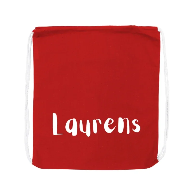 Wil jij een gymtas die echt bij jou past? Deze gepersonaliseerde trekkoordrugzak wordt bedrukt met jouw naam in een lettertype dat jij zelf kiest – super persoonlijk en uniek!