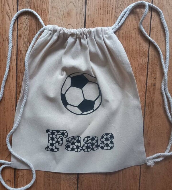 Maak van elke gymles een feestje met deze gepersonaliseerde gymtas met coole voetbalprint en jouw naam eronder. Superhandig én stoer!