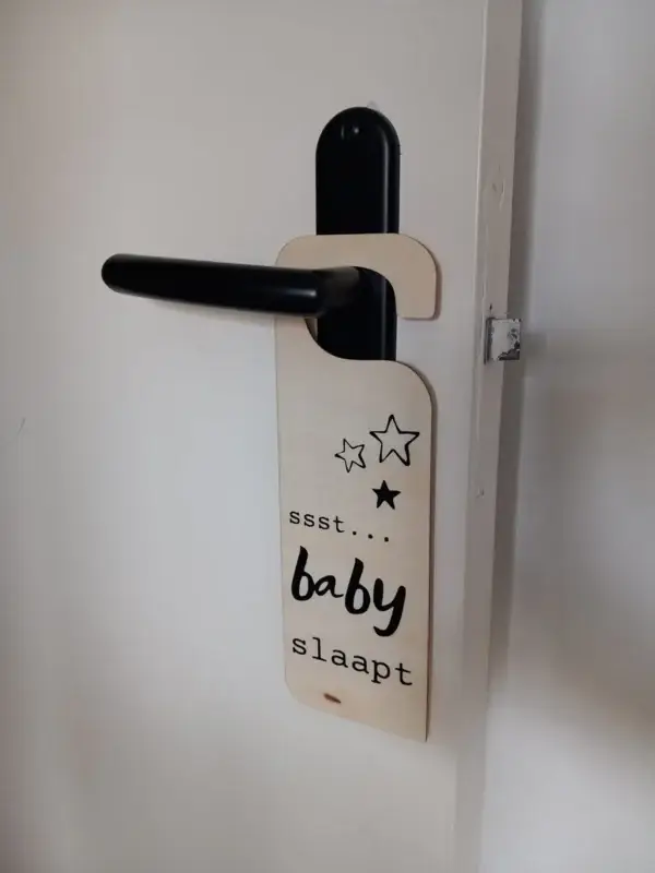 De houten deurhanger heeft een natuurlijke, warme uitstraling en past bij vrijwel elk interieur. Hij is ideaal om rustmomenten aan te geven en voorkomt dat bezoekers per ongeluk de baby wakker maken.