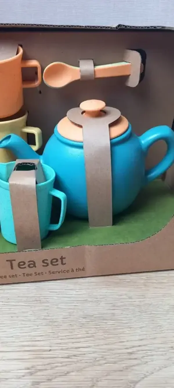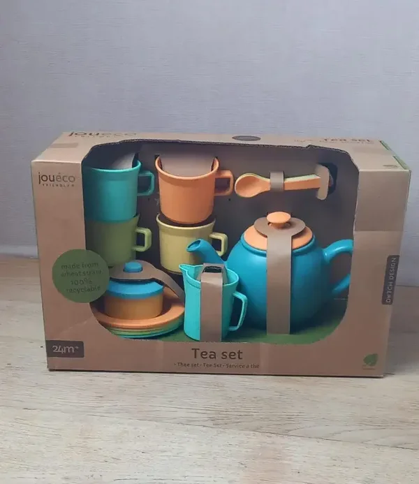 Klaar voor een gezellig theefeestje? 🍵 Dit vrolijke bioplastic theeserviesje bevat alles wat je nodig hebt: theepot, kopjes, melkkannetje, suikerpotje, bordjes en lepeltjes. Perfect voor kleine handjes én goed voor de planeet! Ideaal voor rollenspel, sociale interactie en uren speelplezier. Een duurzaam Sinterklaas- of verjaardagscadeau dat kinderen laat stralen! 🎉🌿