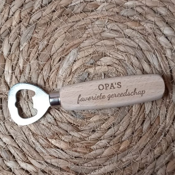 Op zoek naar een stoer en origineel cadeau voor papa of opa? Deze houten flesopener met de gravure “Dit is mijn favoriete gereedschap”, “Papa’s favoriete gereedschap” of “Opa’s favoriete gereedschap” is precies wat je zoekt! 🛠️🍻