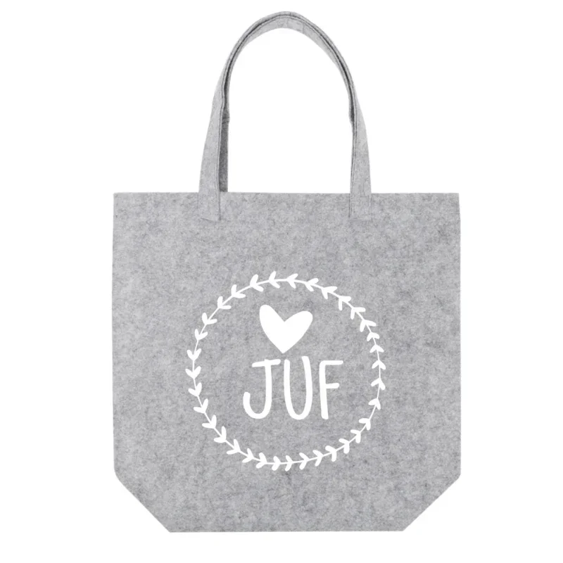 Vilten tote bag ‘Juf’ – duurzaam juffencadeau