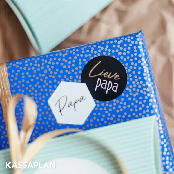 Maak jouw cadeau voor papa extra speciaal met deze stijlvolle cadeaustickers! Perfect voor Vaderdag, een verjaardag of zomaar een verrassing.