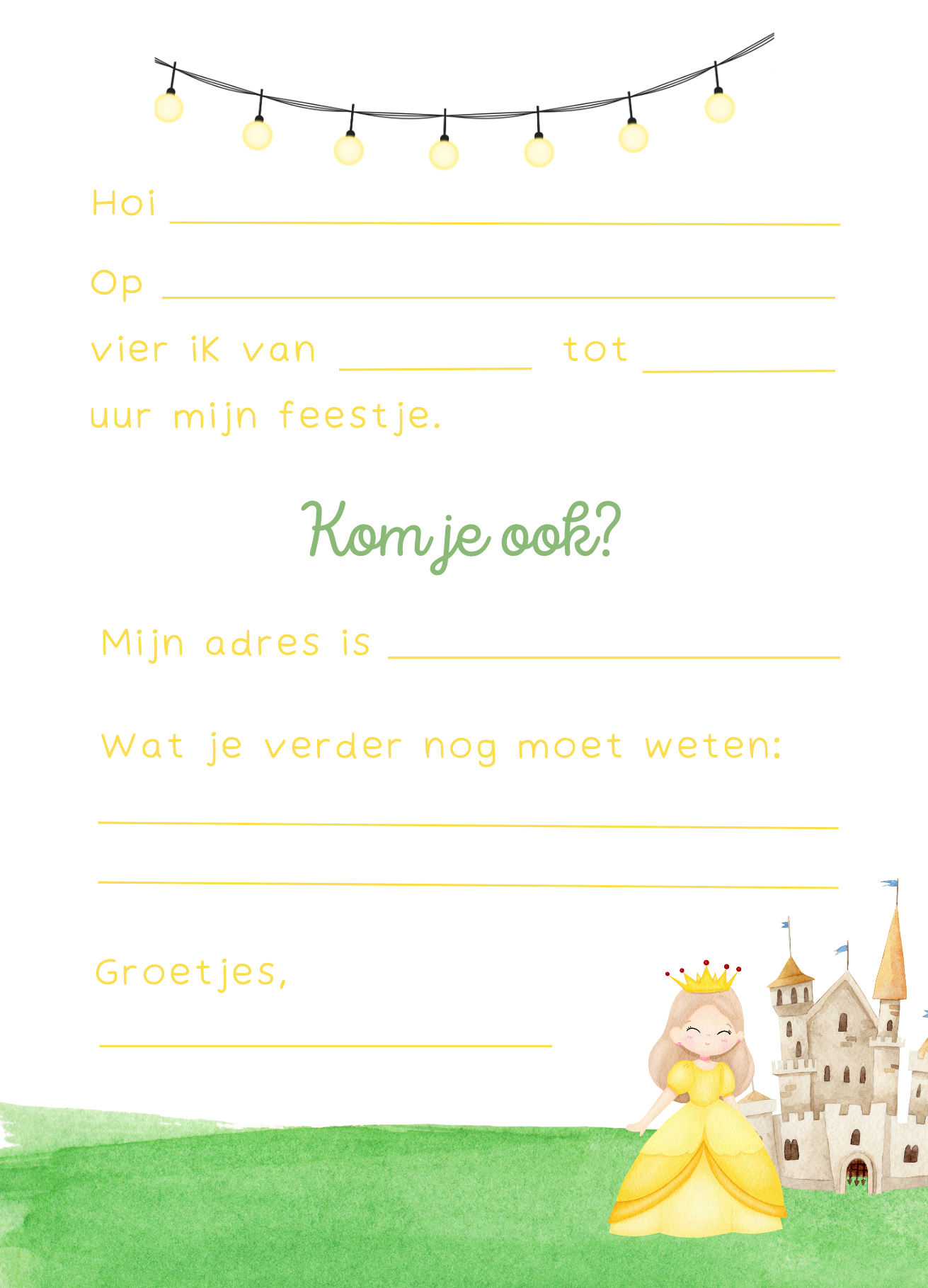 Uitnodiging kinderfeestje- Prinses