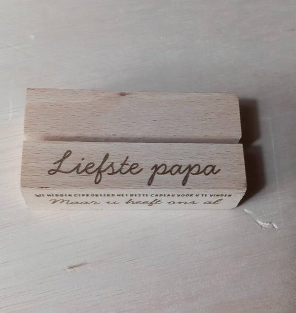 Op zoek naar een persoonlijk en liefdevol Vaderdagcadeau? Deze houten fotohouder heeft een gleuf voor een foto én een gegraveerde tekst die zorgt voor een glimlach:
