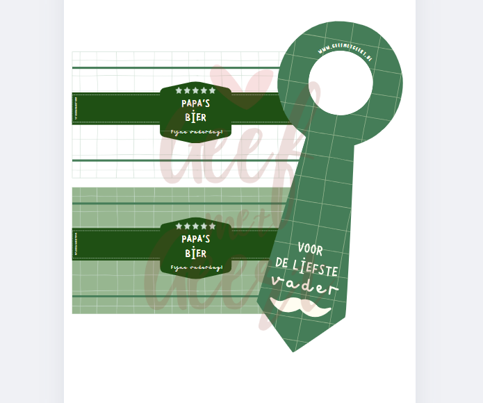 Verras je vader met een zelfgemaakt cadeautje! Deze printable set bevat 2 stoere bierwikkels én een leuke hanger voor om de hals van bijvoorbeeld een wijnfles. Print ze thuis, plak ze op een fles en klaar is je originele Vaderdagcadeau!
