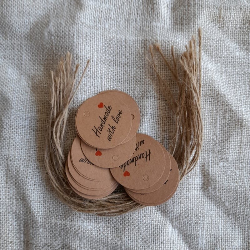 ✔ Ronde labels met hartje en ‘Handmade with love’