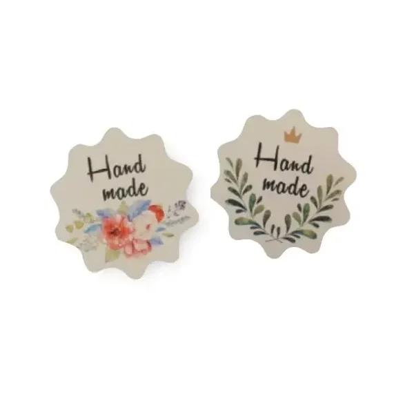Leuke, een tikkeltje nostalgische stickers met de tekst Handmade – perfect om jouw zelfgemaakte cadeautjes of creaties een persoonlijke touch te geven.
