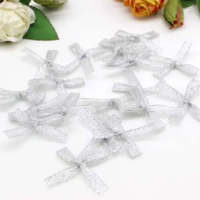 Organza strikjes zilver – Set van 30 stuks – 3,5 x 4 cm – Voor kerstkaarten, cadeaus en feestelijke decoratie ❄️✨
