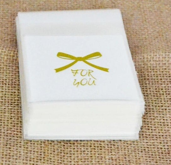 Verpak je kleine cadeautjes en traktaties stijlvol met deze chique traktatiezakjes van 7x7 cm. Het gouden zakje is bedrukt met de tekst “FOR YOU” en een mooie strik boven de tekst, wat zorgt voor een luxe uitstraling. Dankzij de plakstrip sluit je de zakjes makkelijk en stevig af. Perfect voor feestjes, bedankjes en speciale momenten!