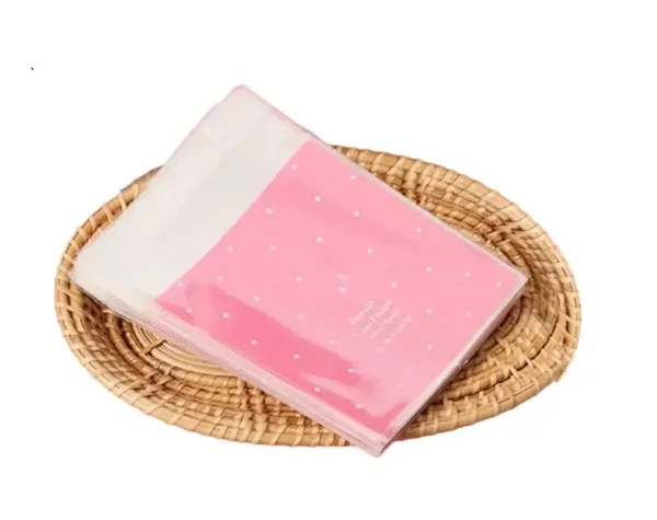 Traktatiezakjes 7x7 cm – Set van 30 stuks – Transparant met witte stippels & roze achterkant – Schattige kleine traktatieverpakking 😊💗