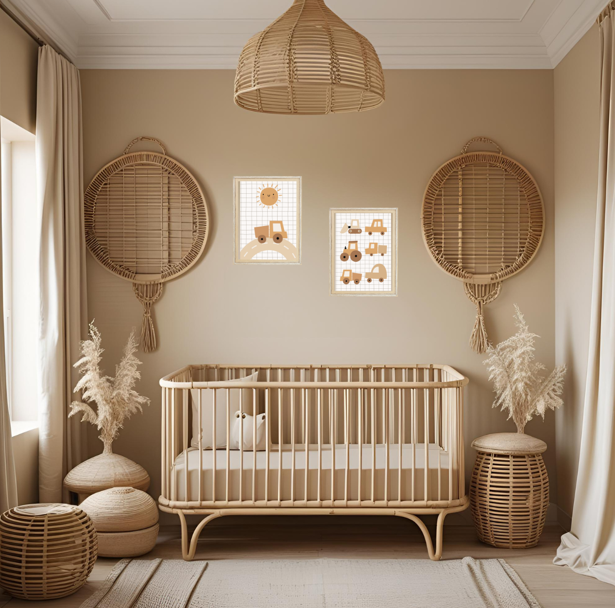 Set van 2 A4 kinderkamerposters – Voertuigen in bruintinten – Perfect voor een stoere jongenskamer