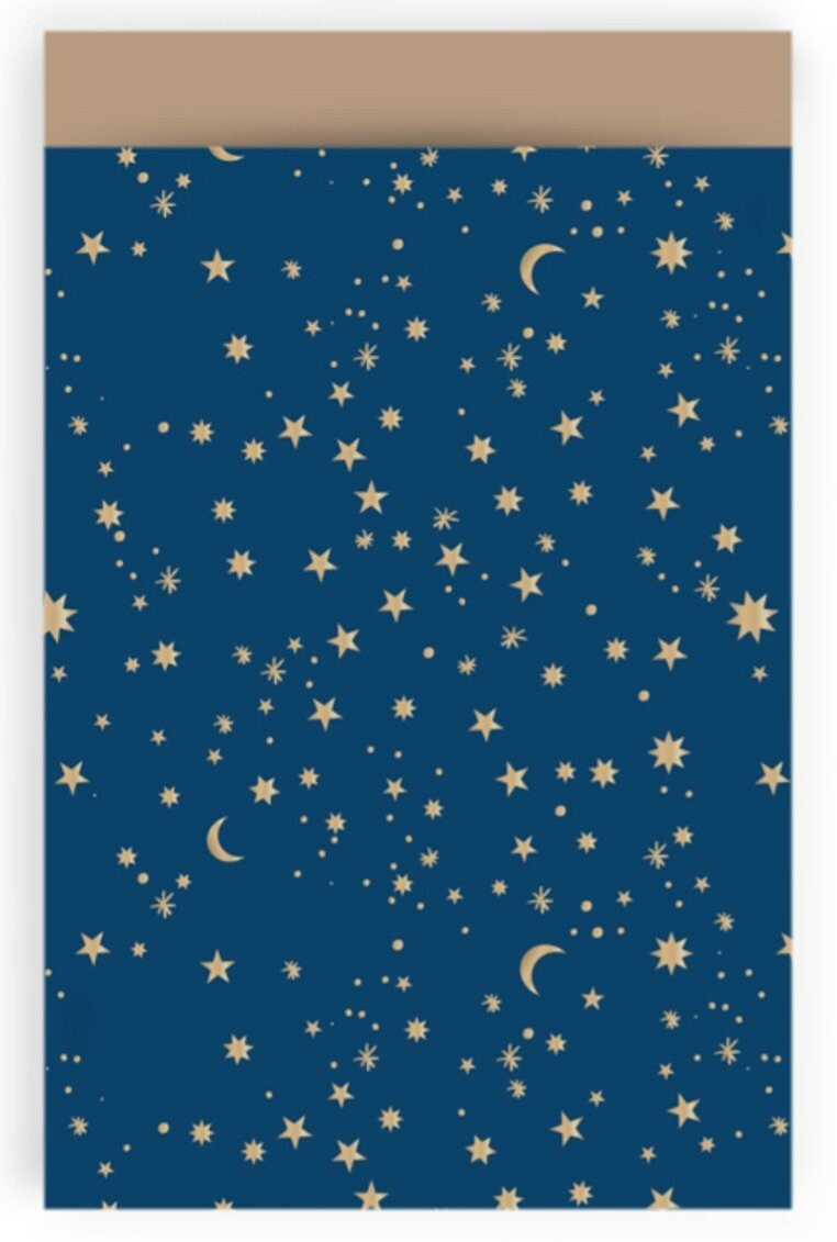Deze luxe cadeauzakjes van 12x19 cm, gemaakt van glanzend metallic papier in een stijlvol donkerblauw met gouden sterren, zijn ideaal voor het verpakken van kleine cadeautjes, traktaties of als feestelijke bedankjes tijdens de kerstperiode. Het sprankelende sterrenmotief geeft de zakjes een elegante uitstraling, perfect voor kerstvieringen en andere feestelijke gelegenheden.